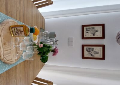 Do jednotlivých apartmánů se vchází společnou chodbičkou s lehkou policí na odkládání bot, kterou je možné přesunout do pronajatého apartmá.