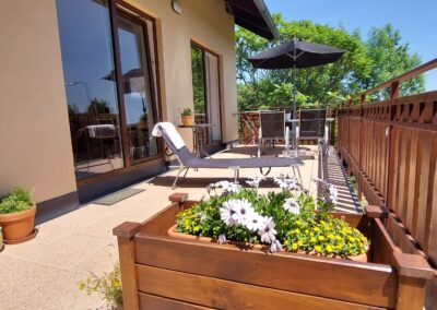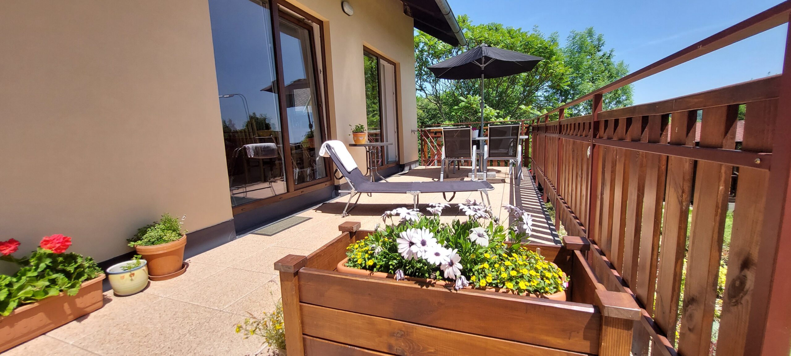 Vybavení apartmánu, celková obytná plocha 65 m2 + terasa + pergola